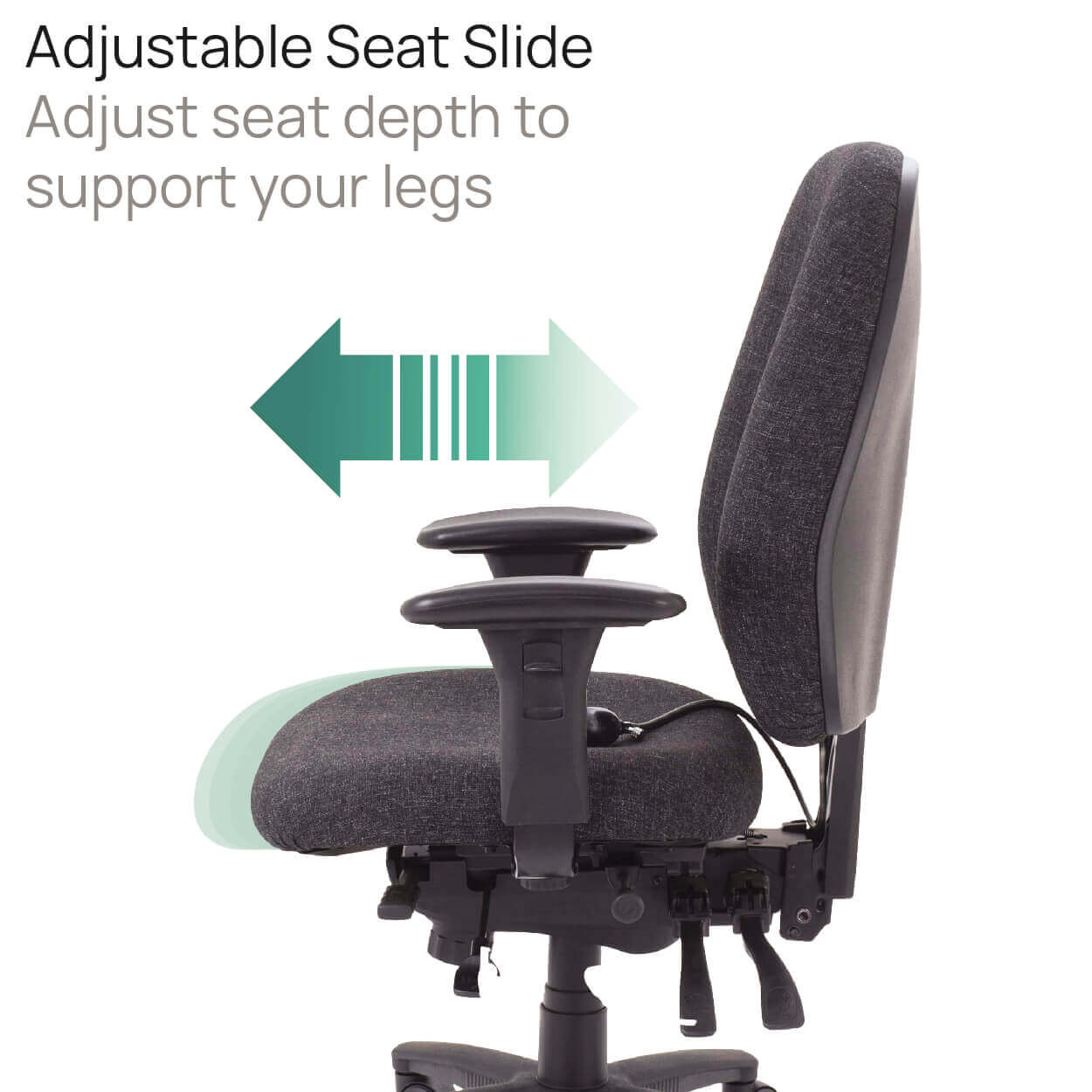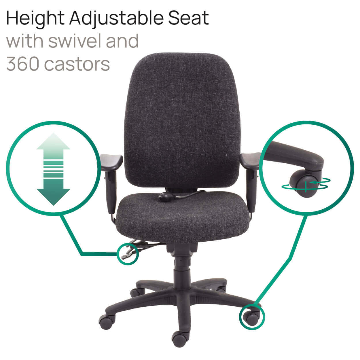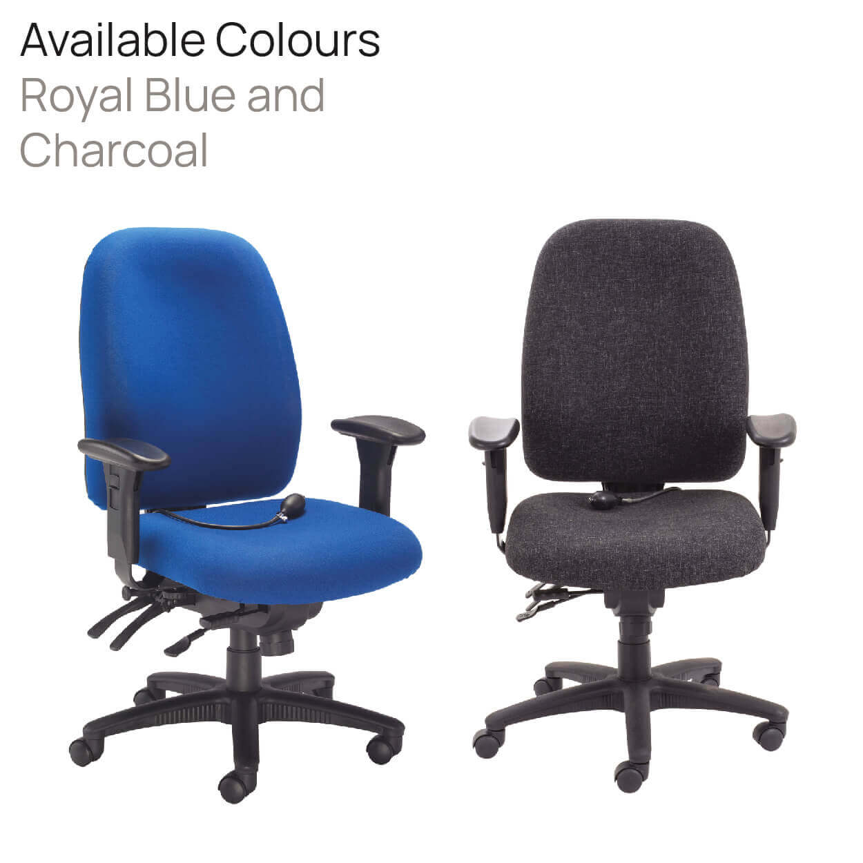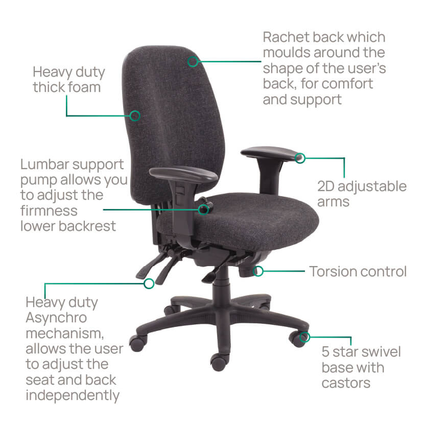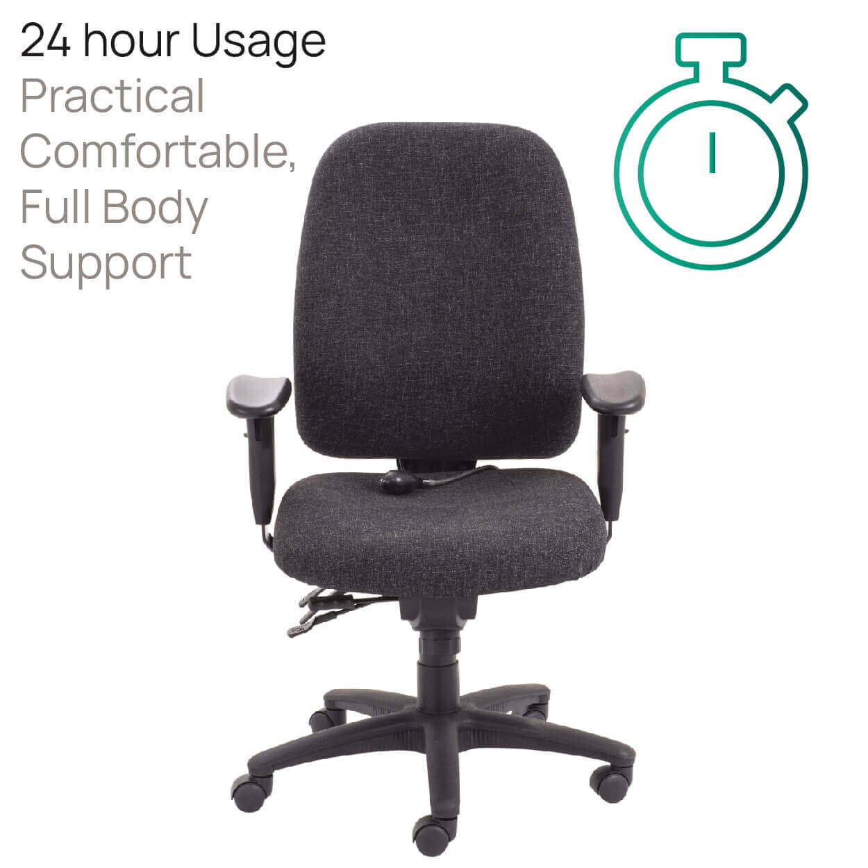 A high back ergonomic 24hr office chair, offering full body support at exceptional value, with an asynchro mechanism and high levels of adjustability. This heavy duty 24hr office chair will support your posture all day long.